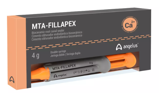 O MTA Fillapex da Angelus é um cimento obturador endodôntico biocerâmico indicado para obturação de canais radiculares na dentição permanente em combinação com materiais de selamento endodôntico (cones de guta-percha). Ele conta com ótimas propriedades para oferecer um fácil manuseio aos profissionais e rápida recuperação dos tecidos. Possibilita a obturação de canais acessórios, ao mesmo tempo que conta com fácil remoção com solventes de guta-percha e contribui na ágil recuperação óssea e formação do cemento.