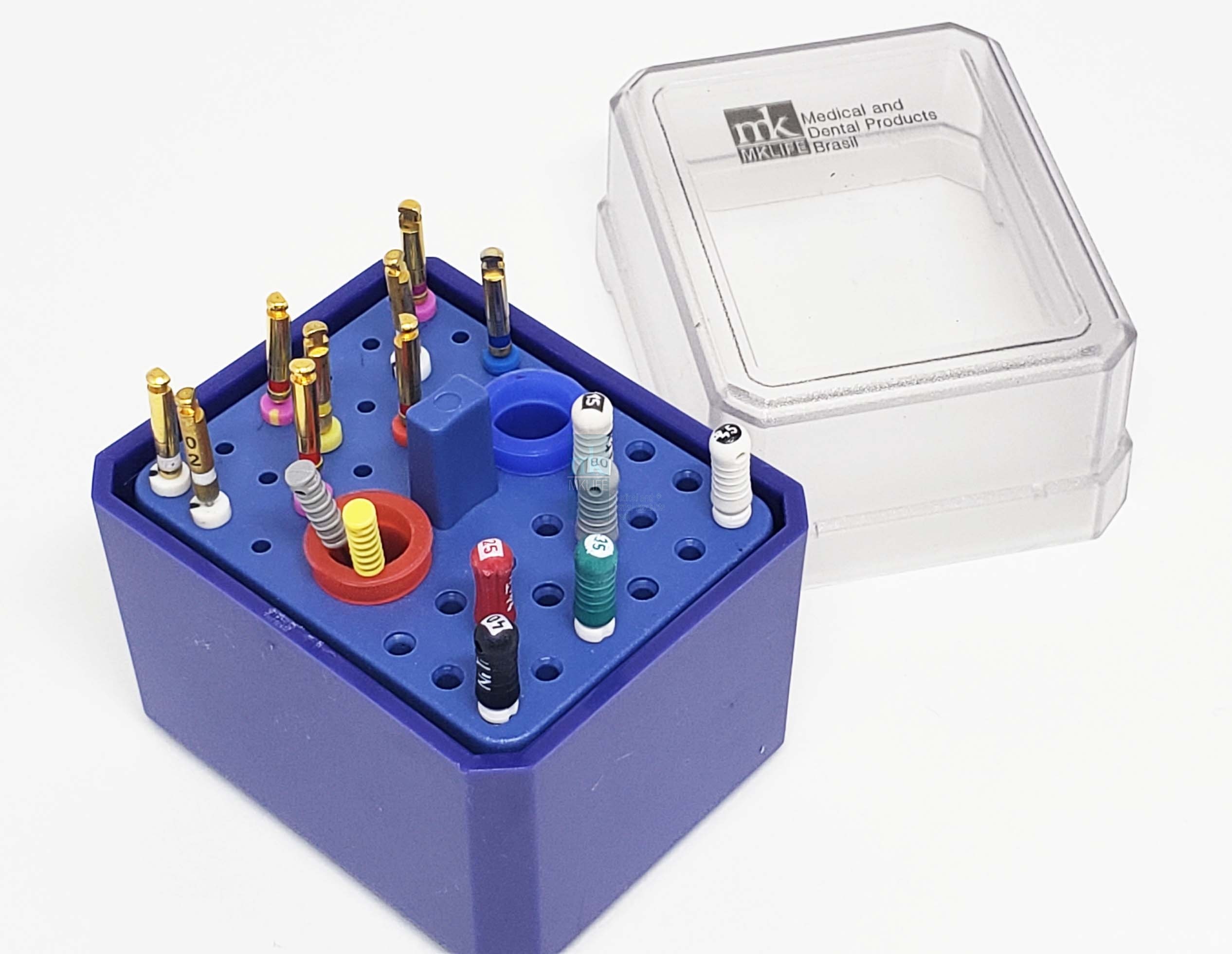 Estojo ideal para armazenar instrumentos endodônticos e algumas brocas.