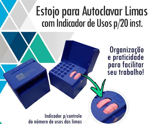 Estojo para autoclavar limas com capacidade para 20 instrumentos. Possui marcador para controle do número de vezes que o instrumento foi utilizado e régua milimetrada. É organização e praticidade para facilitar seu trabalho.